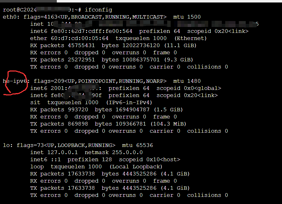 he-ipv6接口并重启网络:ifup he-ipv6 systemctl restart networking验证配置:
