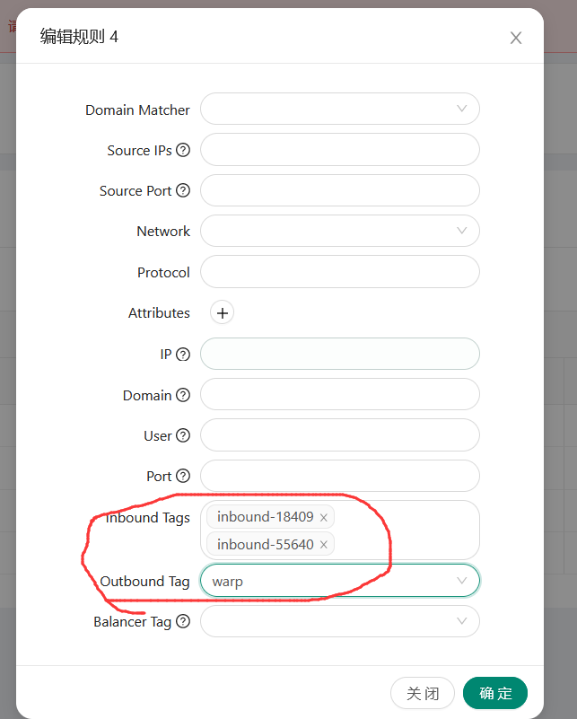 - Inbound Tags:选择入站端口。