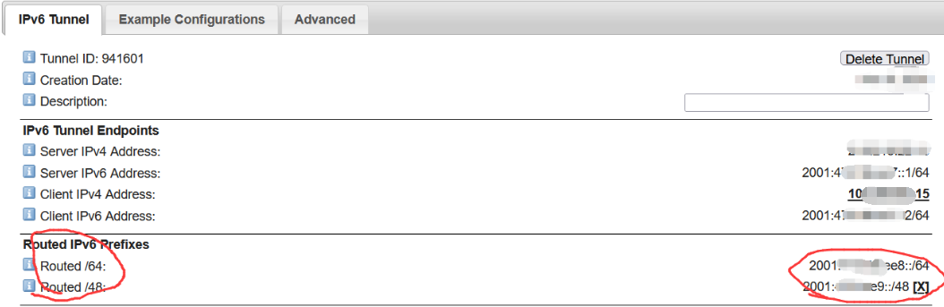 保存后,在 Tunnel Details 页面查看分配的 IPv6 地址:
