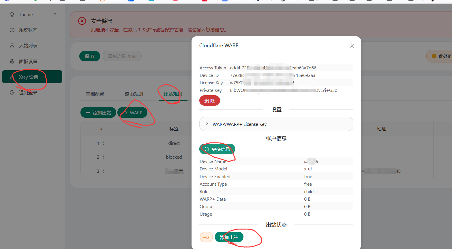 - Outbound:选择 Warp。